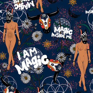I am Magic Crown with a printed design inspired by the joy of carnival, the importance of joy from the origin and the inside, connecting with the earth, sacred geometry and divinity.