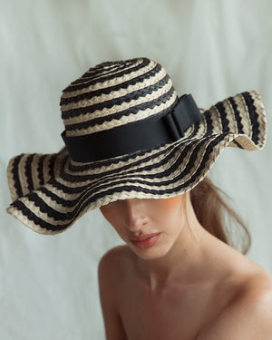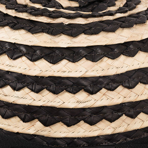 Hand woven Black and Natural hat in Palma Real Straw, with 10cm wavy brim.