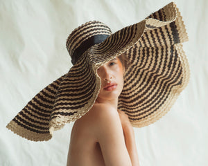 Sombrero hecho a mano en Palma Real, con maxi ala asimétrica ondulada de 30 cm de ancho. REGIÓN Tolima. *Con cinta interior para ajustar talle.